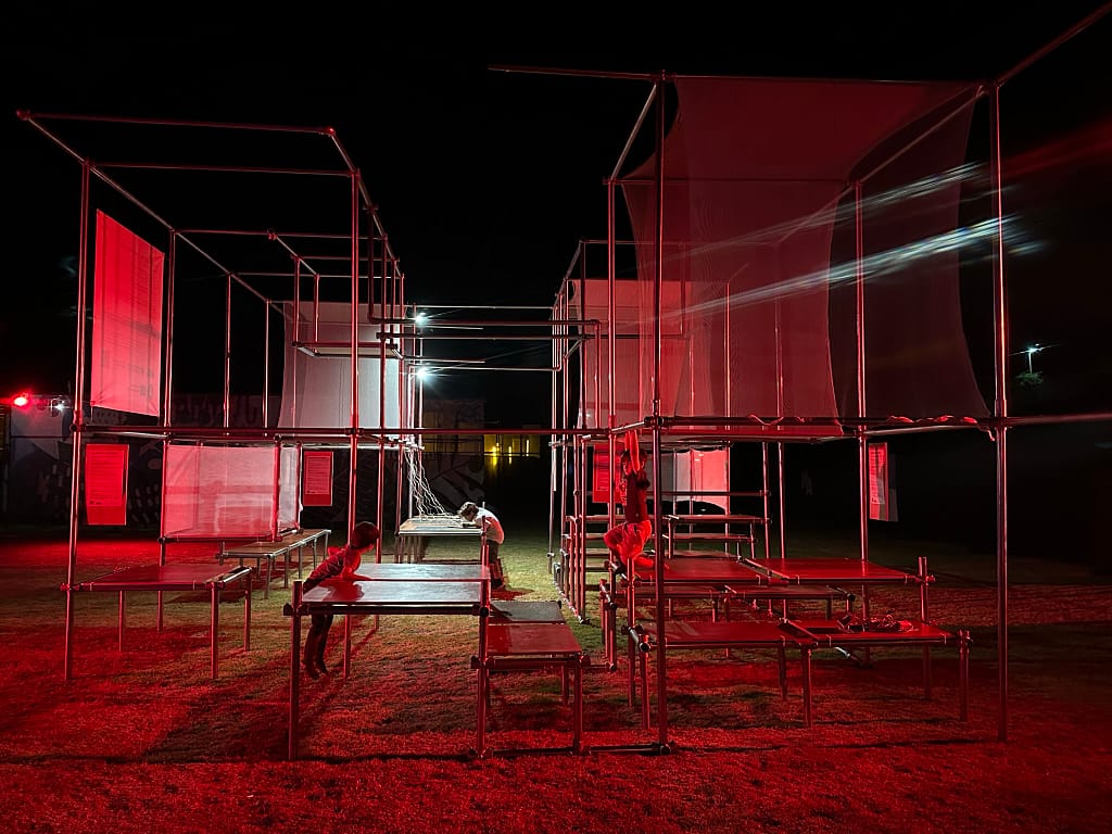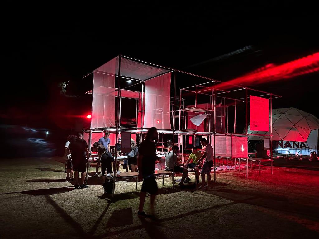 Agora is a mobile structure designed by Urban Gorillas that aims to enhance public engagement by providing a platform for diverse voices to express themselves. Ingeniously designed, Agora’s flexible and ,modular structure allows for new spatial configurations to develop allowing for co-creation and creativity during its assembly. The structure remained at the open-air sports ground in Lefkara village for five days, providing a space to sit and relax during the festival.
