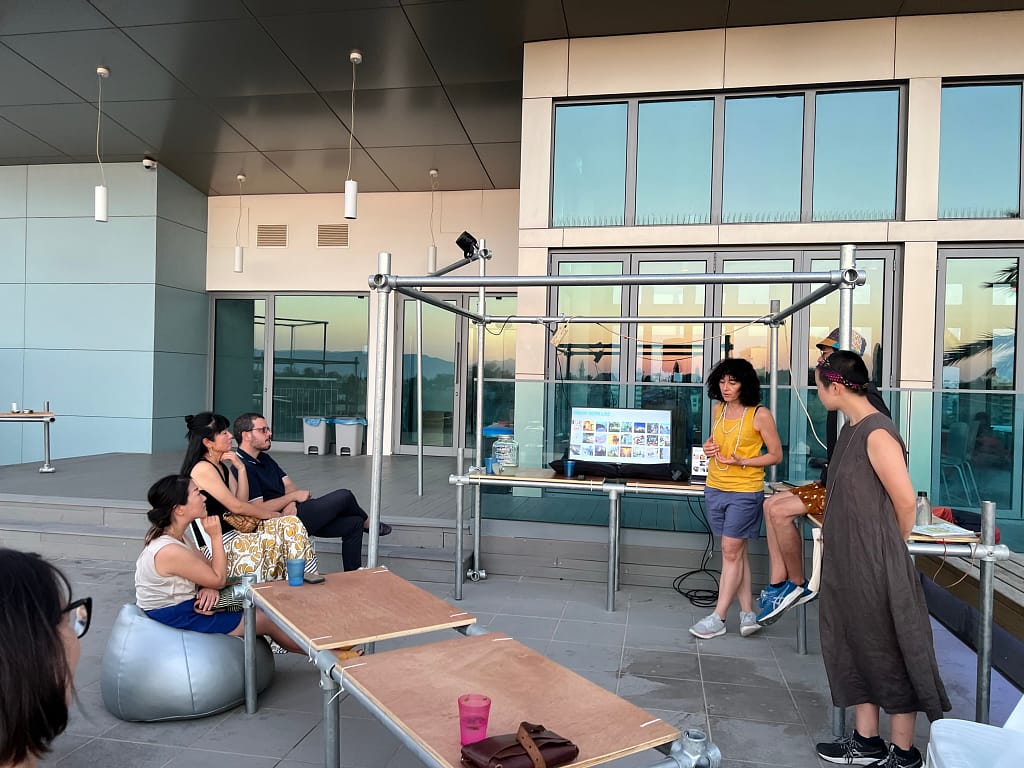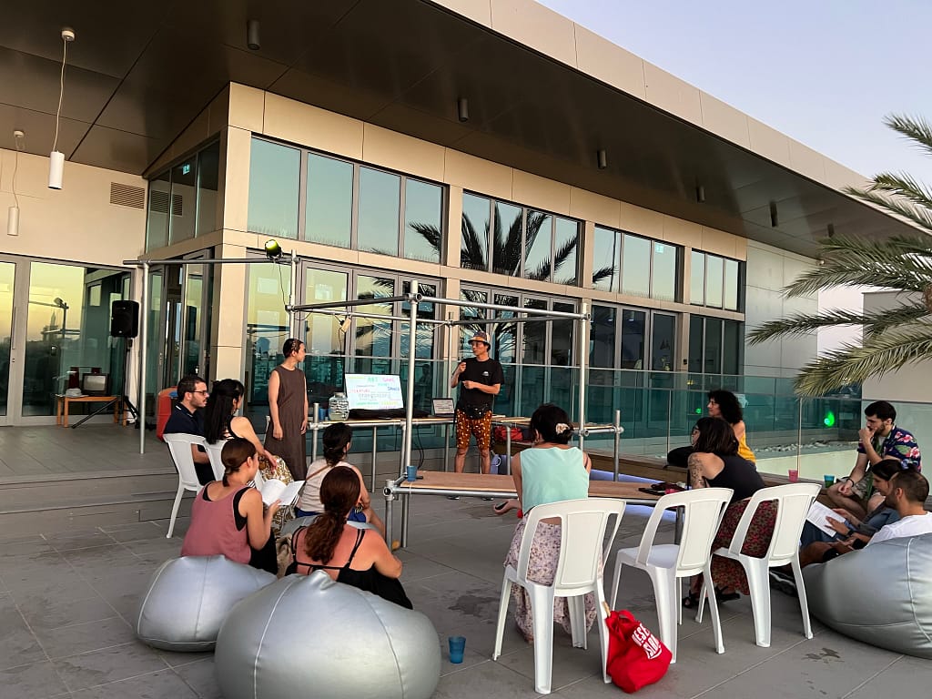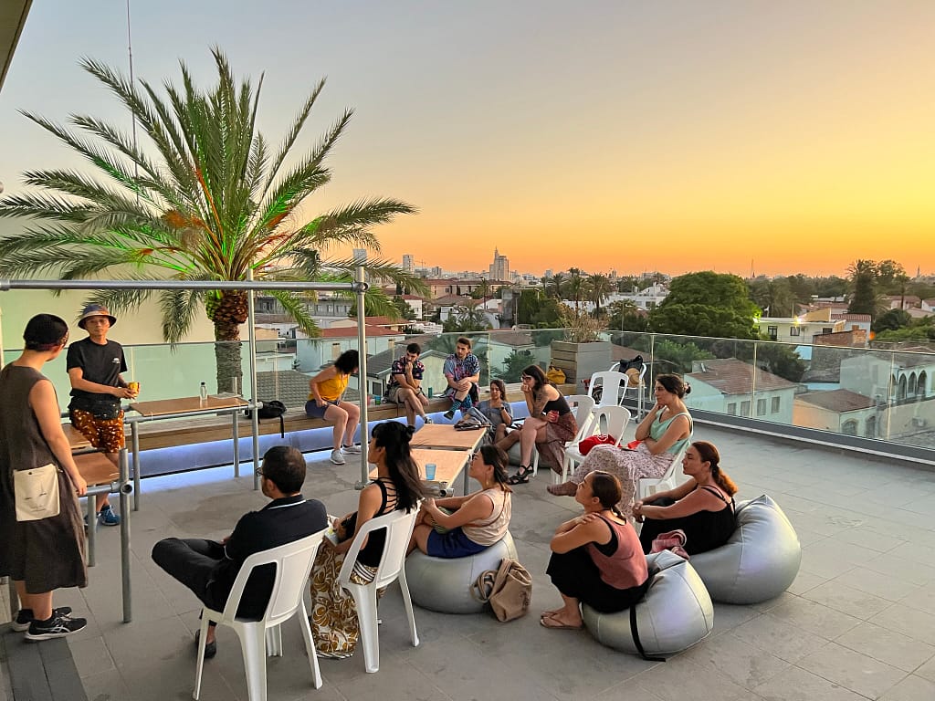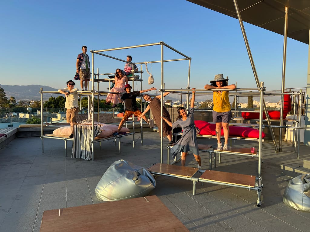 In a notable gathering at the Agora, the Cyprus-based Urban Gorillas hosted a discussion with Orangcosong, an innovative art collective from Japan. Orangcosong, during its artistic residency in Cyprus, presented a distinctive approach to incorporating local life, community engagement, and historical context into its global projects. This event marks the beginning of a series of events organised by Urban Gorillas as part of the European Creative Rooftop Network (ECRN) project, funded by Creative Europe. The activities are co-curated by Urban Gorillas and the State Gallery of Contemporary Art – SPEL. Agora, a mobile and creatively designed structure by Urban Gorillas, serves as a dynamic space for open dialogue and cultural exchange. Currently situated on the rooftop of the SPEL building, Agora exemplifies the transformative power of architecture in public spaces. Funded by the Commonwealth Foundation and the JEC World Commemorative Fund.