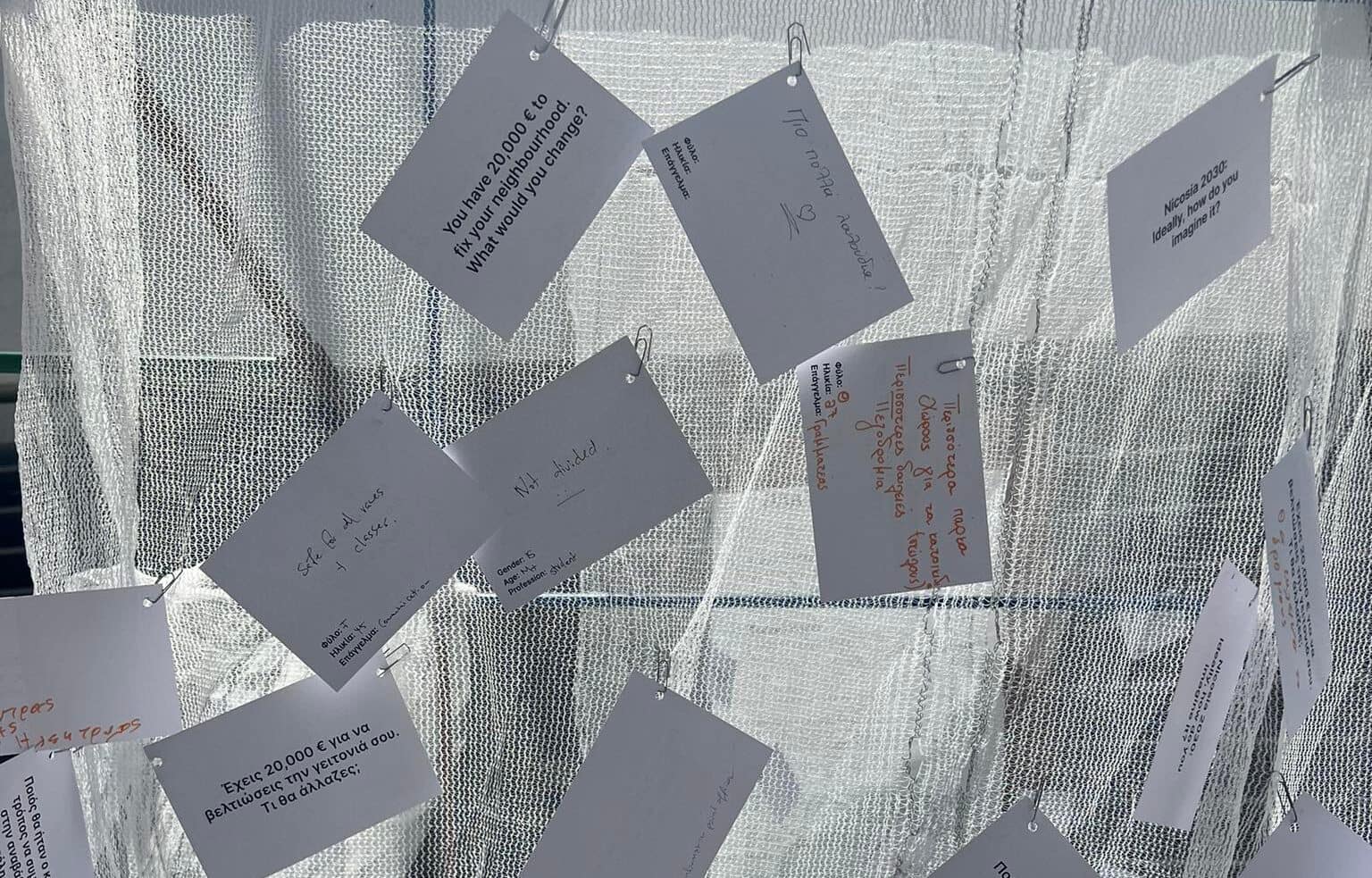 “Letters to the City” is an interactive installation that encourages citizens to share their visions for the future of cities in Cyprus. The installation acts as a shared platform for ideas and engagement. It invites visitors to engage in creating a collective urban vision by generating ideas, thoughts and possibilities. By compiling the results, Urban Gorillas will create a database of citizens’ visions and needs that can inform future planning decisions in shaping the future of cities in Cyprus.